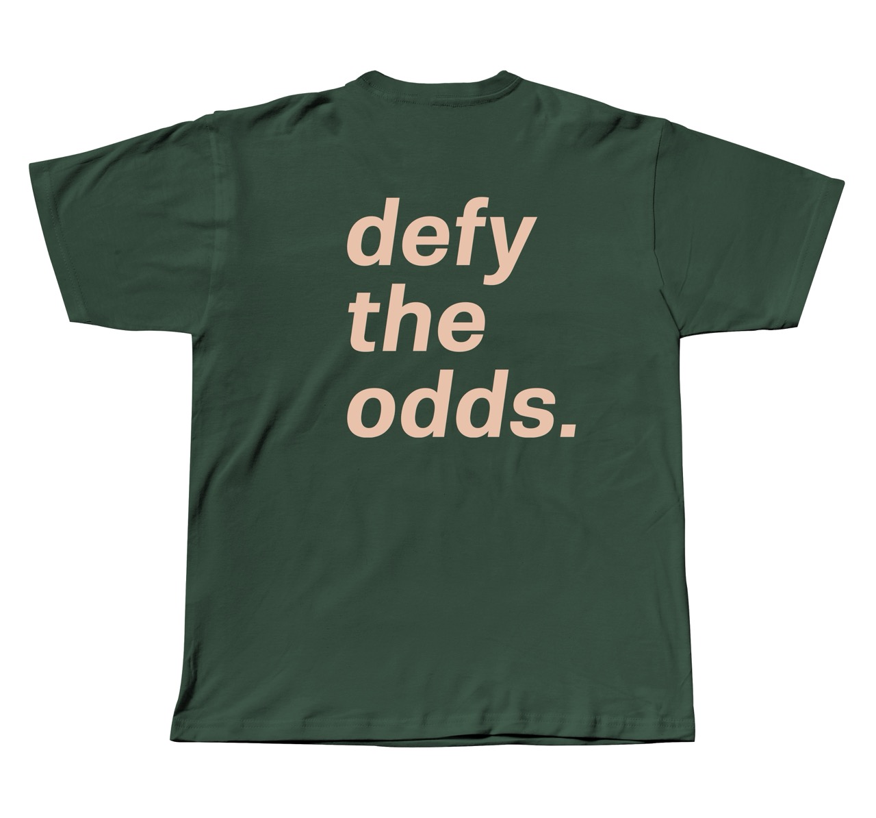 Mensaje simple, actitud grande. Cuando el clima, las subidas o la cabeza digan que frenes, esta remera te recuerda lo contrario: Defy the odds—un kilómetro a la vez.